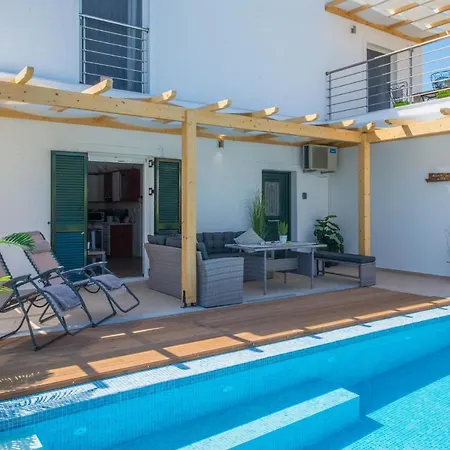 Do dyspozycji Gości jest jadalnia na świeżym powietrzu z urządzeniem do parzenia kawy/herbaty. W kuchni znajdują się kuchenka mikrofalowa, czajnik elektryczny i lodówka. Oferująca dania kuchni greckiej restauracja Thines znajduje się około 5 min pieszo od obiektu. Willa oferuje prywatny basen kąpielowy, a także animacje.